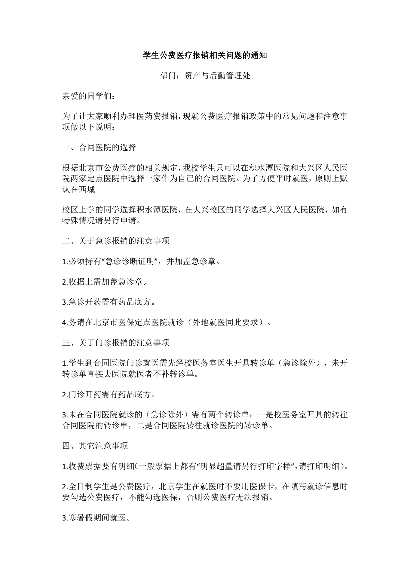 关于学生公费医疗报销相关问题的相关通知的解释权归努努影视 医务室,即日实施,请同学周知!西城校区医务室 张复兵 68322392,大兴校区医务室 韩京京 61209616。