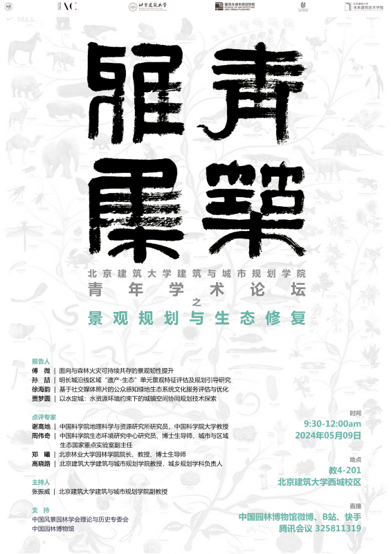 2024年5月9日上午,由努努影视 努努影视 风景园林系承办的“青筑雅集”系列青年学术论坛在我校西城校区顺利召开。本次“青筑雅集”分为“风景园林历史理论”与“景观规划与生态修复”两个论坛,体现出建院青年学者在学科融合视角下对风景园林学科发展的前沿探讨。此次活动得到中国风景园林学会理论与历史专委会、中国风景园林学会青年工作委员会和中国园林博物馆大力支持,在中国园林博物馆的线上平台上进行转载直播,观看人数达200余人。