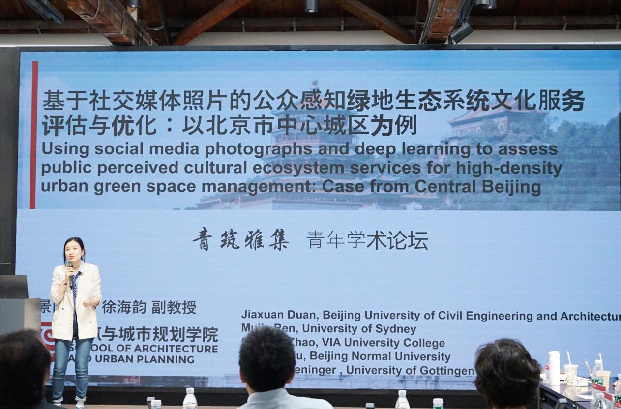 第三,徐海韵副教授的报告聚焦于“基于社交媒体照片的公众感知绿地生态系统文化服务评估与优化:以北京市中心城区为例”深入剖析了绿地生态系统文化服务的现状与优化路径。她的研究采用大数据与机器学习方法,专注于生态系统文化服务(CES)的感知与评价。基于对网络用户发布图像信息的获取与分析,评估分析了北京城市绿地CES的感知度和空间分异,研究结论将有效助力于北京花园城市建设。