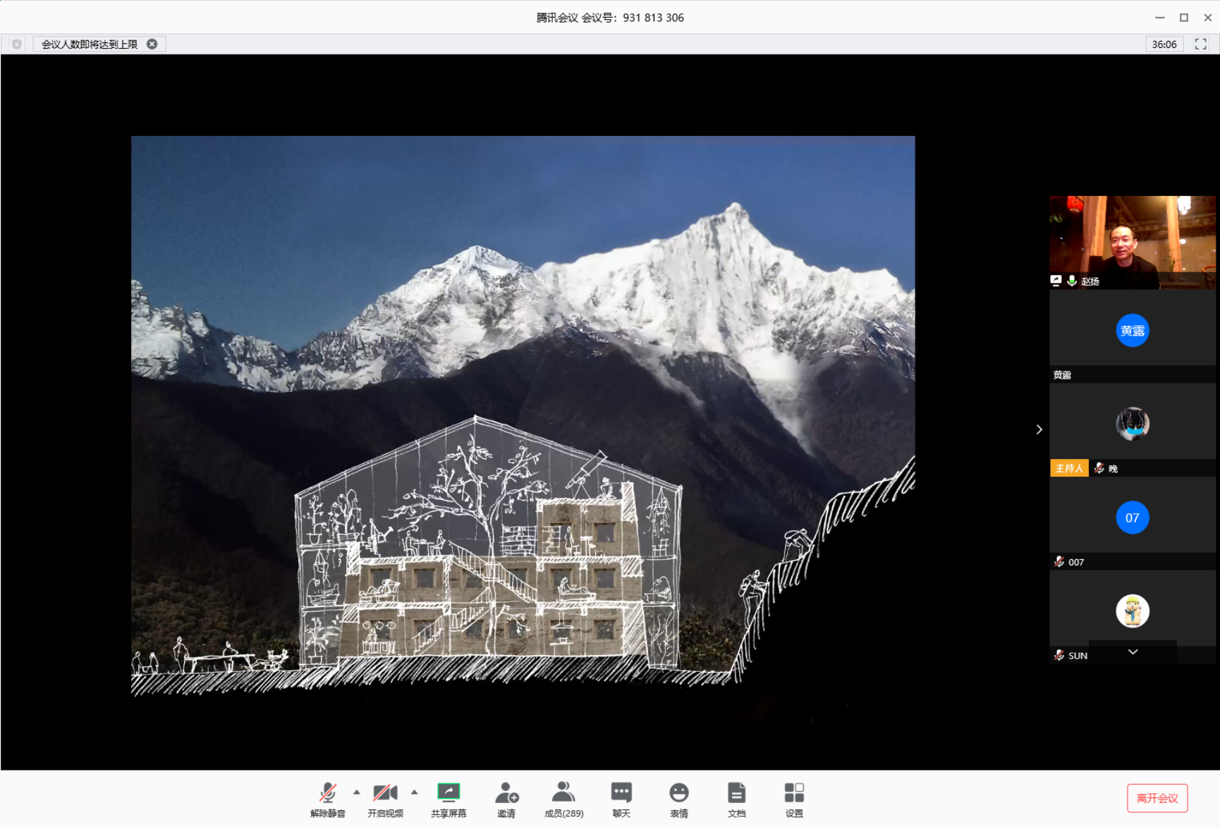 赵扬回顾了其建筑实践的多个阶段与设计作品,从概念构思、方案深化、细部构造等方面,向线上听众阐述他对场地策略与生活方式的理解。赵扬将设计看做是“求道”的过程,提出“敞开心扉”是建筑学科的未来希望,且建筑师应传承“人文精神”。在自由提问阶段,同学们踊跃发言,提出了关于生活方式的表达、未建成的设计等问题,赵老师逐一详细解答。