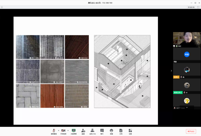 常可回顾了从学习到实践的多个阶段,以及对建筑设计与建筑师理解的变化,随后从概念构思、方案深化、施工进程等角度,详实讲述近期两个实践作品,向线上听众阐述在自下而上的实践研究探索期不断积累的思考,并通过反问看似合理之事,去寻找建筑社会性的契合点,把建筑设计作为与社会交流的媒介。在自由提问阶段,同学们踊跃发言,提出了关于设计出发点、公共性与私密性的平衡等问题,常老师逐一详细解答。