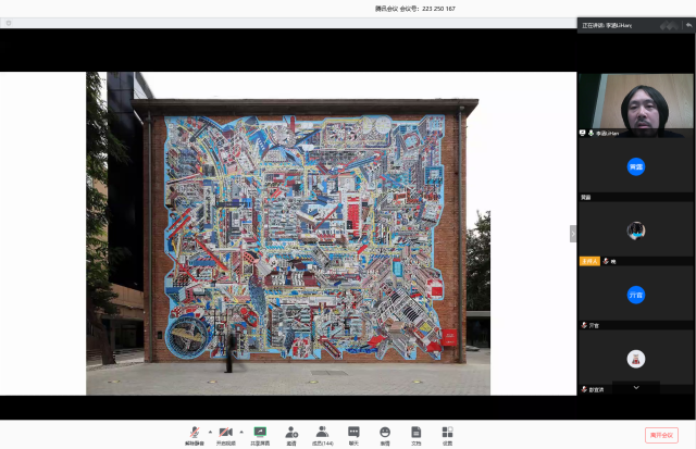 李涵向线上听众讲述了多个实践作品,详细阐释其对绘画、建筑、教学、空间深度等方面的理解,以及对现有生活居住空间的思考。进而提出“对现实世界的观察并重新描绘和取舍也是一种创造”“一个画面里有无数深度,因而降维是另一种升维”“生活才是真的打动人,建筑不应缺乏与生活的关联”等设计理念。在自由提问阶段,同学们踊跃发言,提出关于纸上建筑学、民间建造等问题,李老师逐一详细解答。